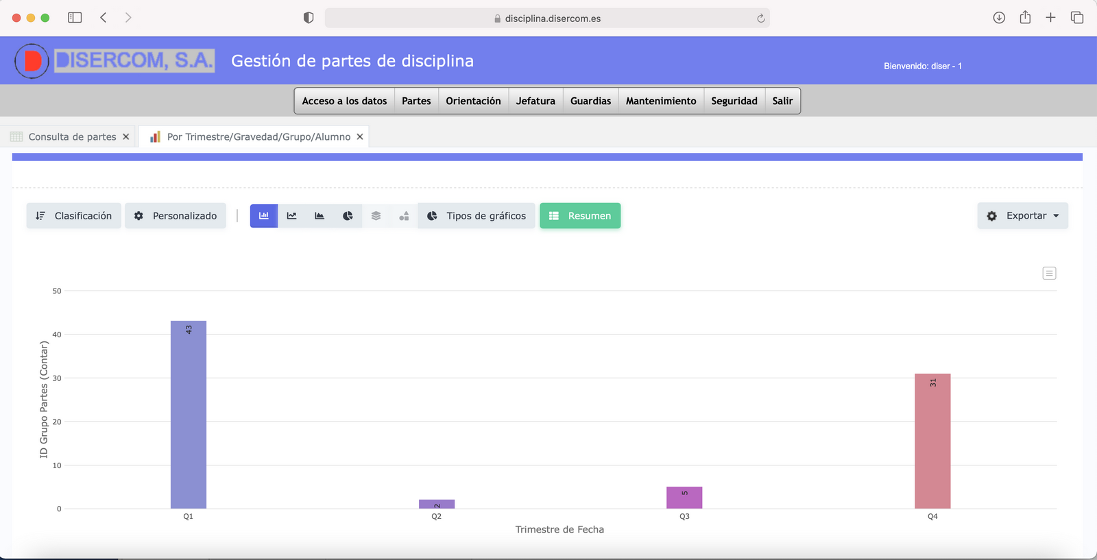 Los tutores pueden controlar de forma visual todos los partes impuestos a sus tutorados.